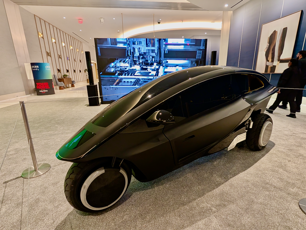 さらに狭い町中でもスイスイ走れる自動運転機能付きのEVバイクも登場している。全天候型で屋根が付いていて、道路が狭く駐車場スペースが少ない都心部で、効率良く移動できる。
